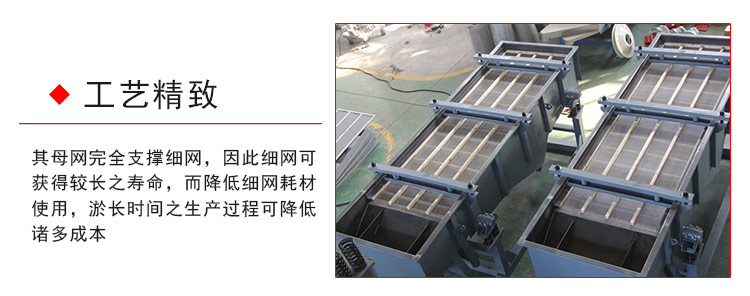 4.其母網(wǎng)完全支撐細(xì)網(wǎng),因此細(xì)網(wǎng)可獲得較長之壽命,而降低細(xì)網(wǎng)耗材使用,淤長時(shí)間之生產(chǎn)過程可降低諸多成本。