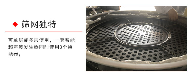 超聲波震動篩是三次元震動篩的衍生產品,它在傳統的振動篩的篩網加裝引入一個低振幅、高頻率的超聲振動波(機械波),從而對篩分超微細粉的效率有很大提高,本機能夠有效的解決物料因團聚、靜電、強吸附性而導致的堵網等難題,是篩分微細物料企業的首要選擇。