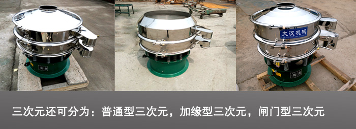 三次元振動篩是一種高精度細粉篩分設備,適用于粒,粉,粘液等物料的篩分。而三次元振動篩其工作原理于旋振篩大致相同,其不同的是三次元還可分為:普通型三次元,閘門型三次元,加緣型三次元。此振動篩也可以多層篩分