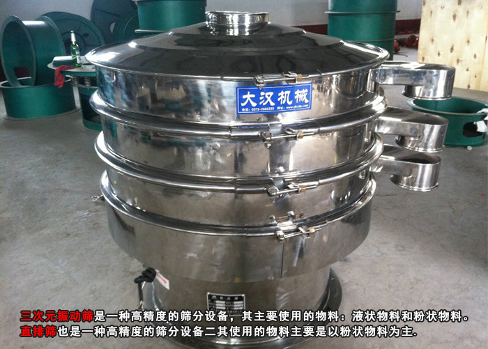 三次元振動篩是一種高精度的篩分設備,其主要使用的物料有:樹脂,涂料,化妝品,淀粉,以及廢水,廢油等的一些液狀物料和粉狀物料。